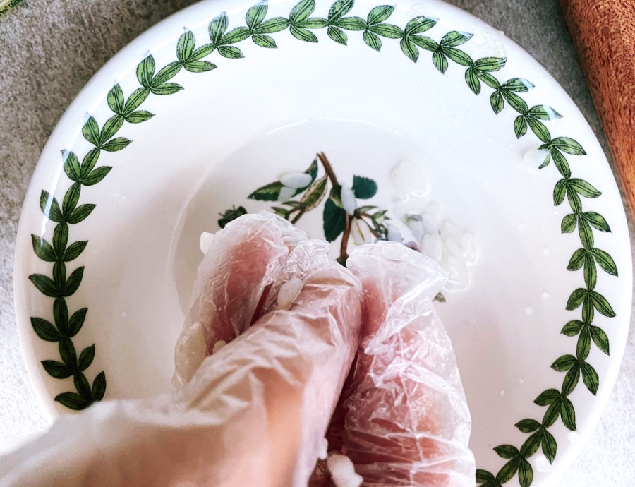 찬물에 살짝 묻히고 뭉치면 밥알이 안달라붙어요~