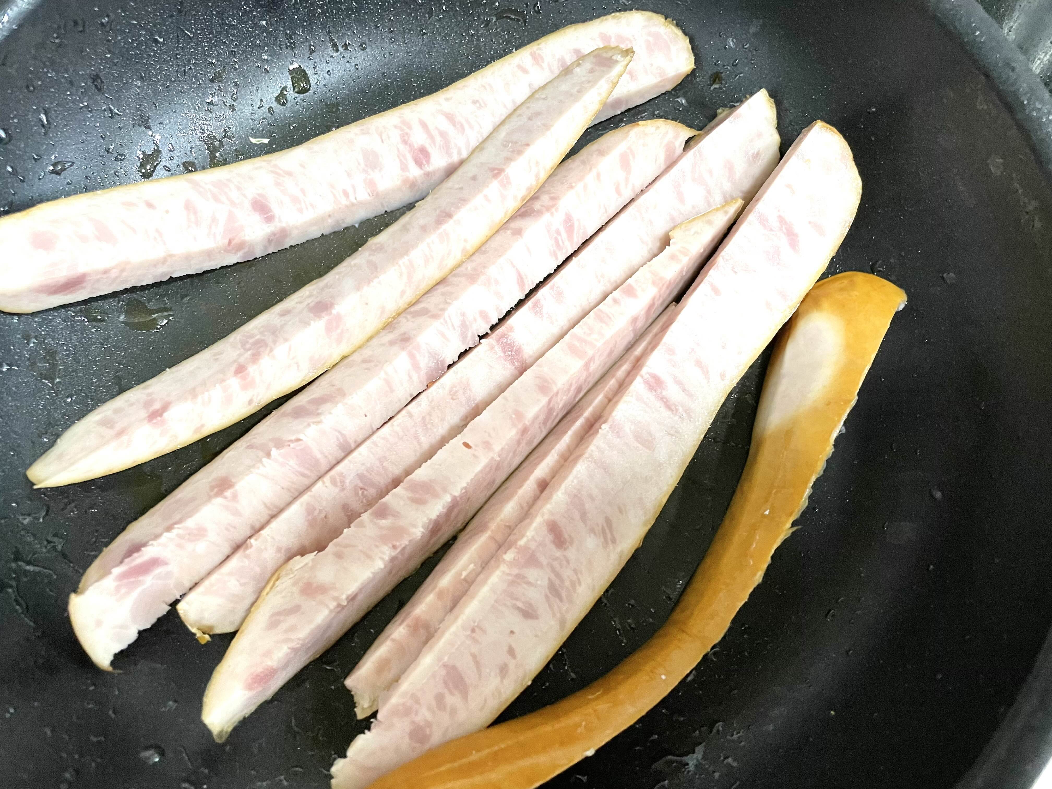 소시지도 길게 썰어 따로 볶아 줬어요~