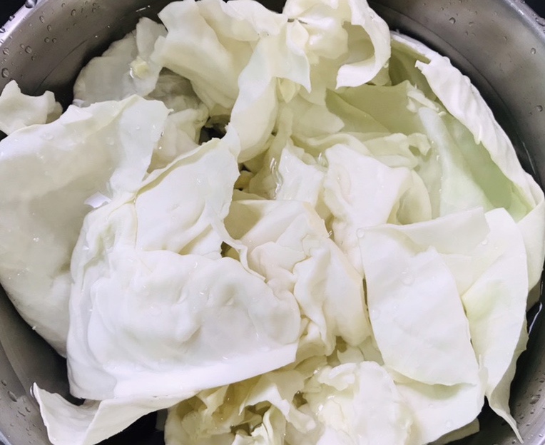 4. 양배추 깨끗이 헹궈 체에 건져 물기를 뺴주세요~